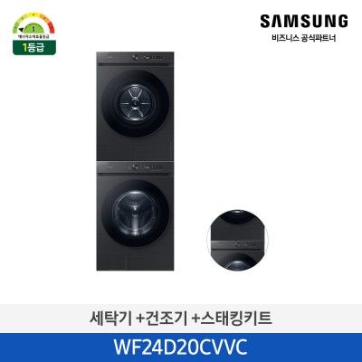[삼성전자] BESPOKE 그랑데 AI 24kg(세탁기) + 20kg(건조기) 블랙 [올인원컨트롤] + 상단 설치 키트 WF24D20CVVC
