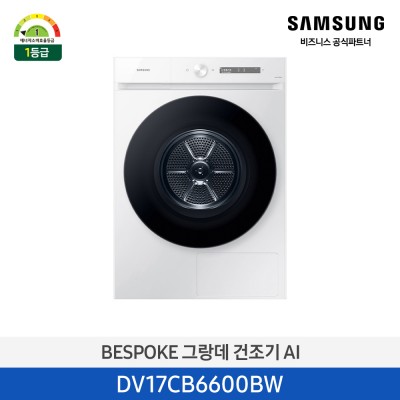 [삼성전자] BESPOKE 그랑데 건조기 AI 17kg 화이트 [심플컨트롤] 1등급 DV17CB6600BW